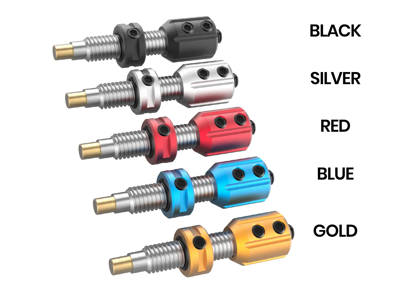 Bottone di pressione di ottima qualità, semplice da regolare grazie ad un'unica vite che regola la pressione della molla. Rispetto ad altri bottoni, il nuovo CUA Bicaster è realizzato con grani maggiorati (m4x4) che offrono migliore tenuta. Inoltre, di serie, pistoncino in metallo-ottone, resistente anche dopo migliaia di frecce.