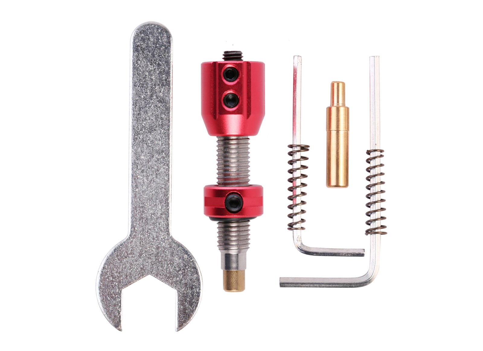 La pratica confezione richiudibile comprende: 1 Bottone completo, 1 Pistoncino Extra Cooper Core, 2 molle Extra, Chiavi di regolazione.