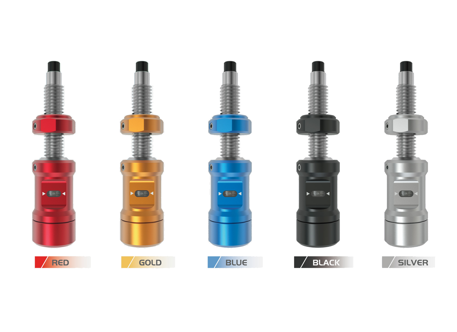 Bottone con micro click regolabili per una precisa regolazione, realizzato in alluminio dal design incredibilmente unico e moderno, viene fornito di chiave di fissaggio in alluminio, vari ricambi per poter settare il bottone in tutte le condizioni (2 pistoncini corti, 2 pistoncini lunghi, 2 molle morbide, 2 molle medie e 2 molle hard).