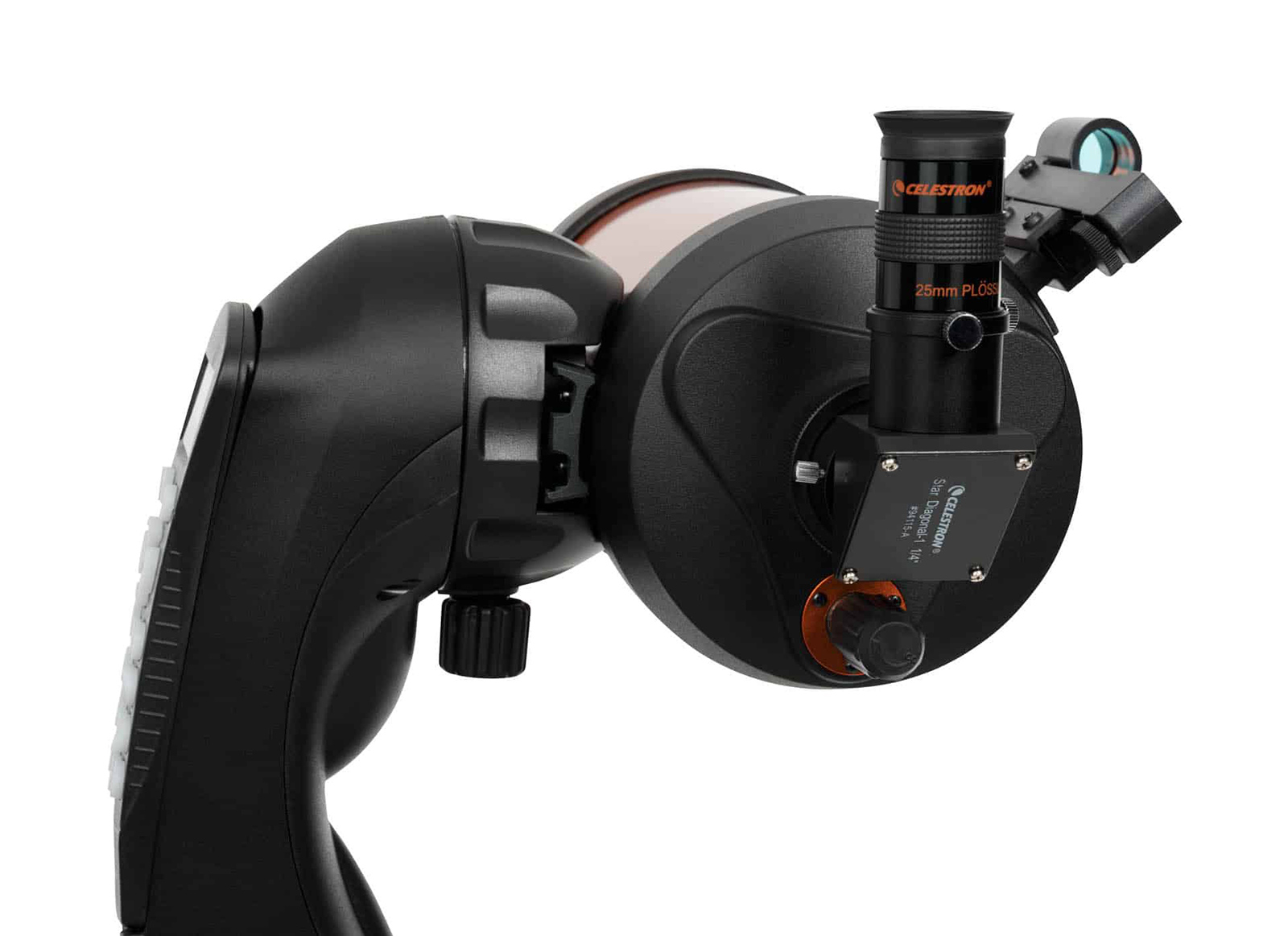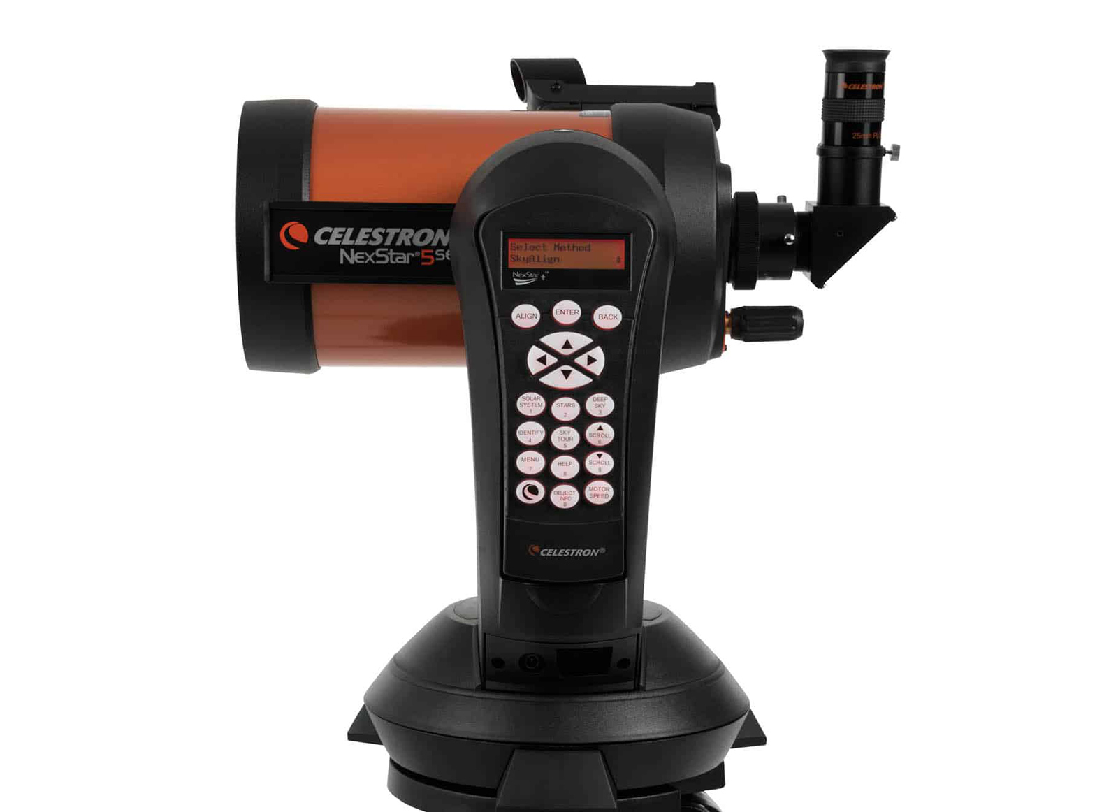 Comprende un alimentatore da rete 220V e un vano batterie (per 8 batterie tipo AA non incluse), pulsantiera NexStar aggiornabile via web, con funzione di allineamento facilitato SkyAlign e database di oltre 40000 oggetti celesti.