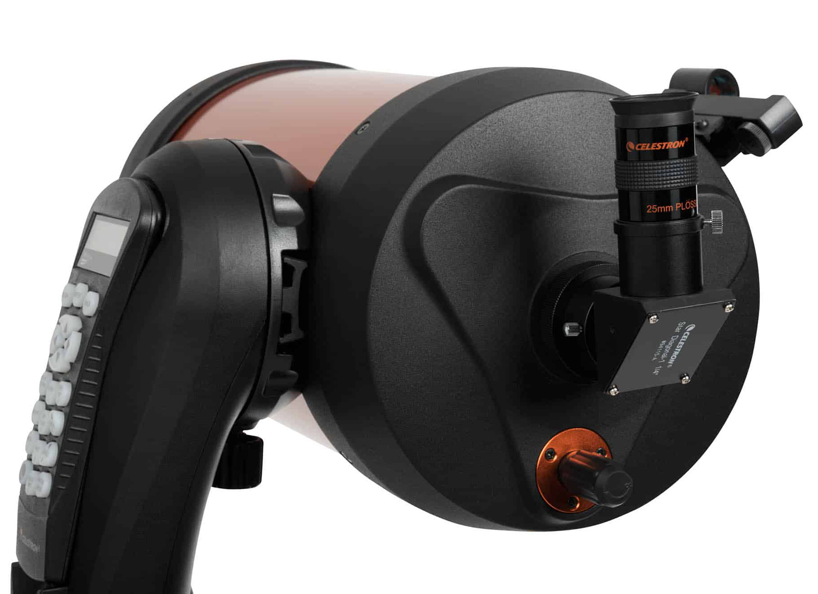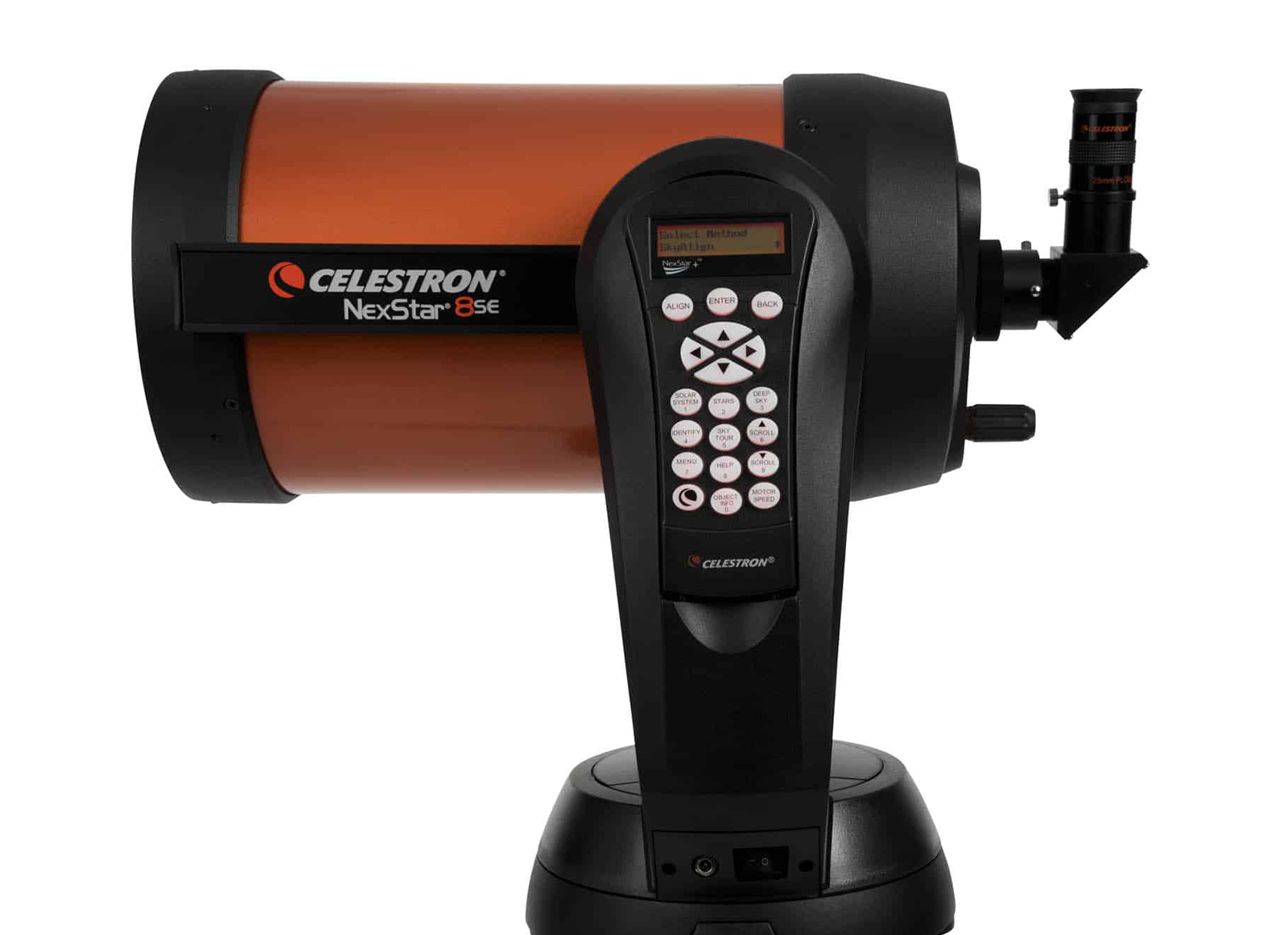 Comprende un alimentatore da rete 220V e un vano batterie (per 8 batterie tipo AA non incluse), pulsantiera NexStar aggiornabile via web, con funzione di allineamento facilitato SkyAlign e database di oltre 40000 oggetti celesti.