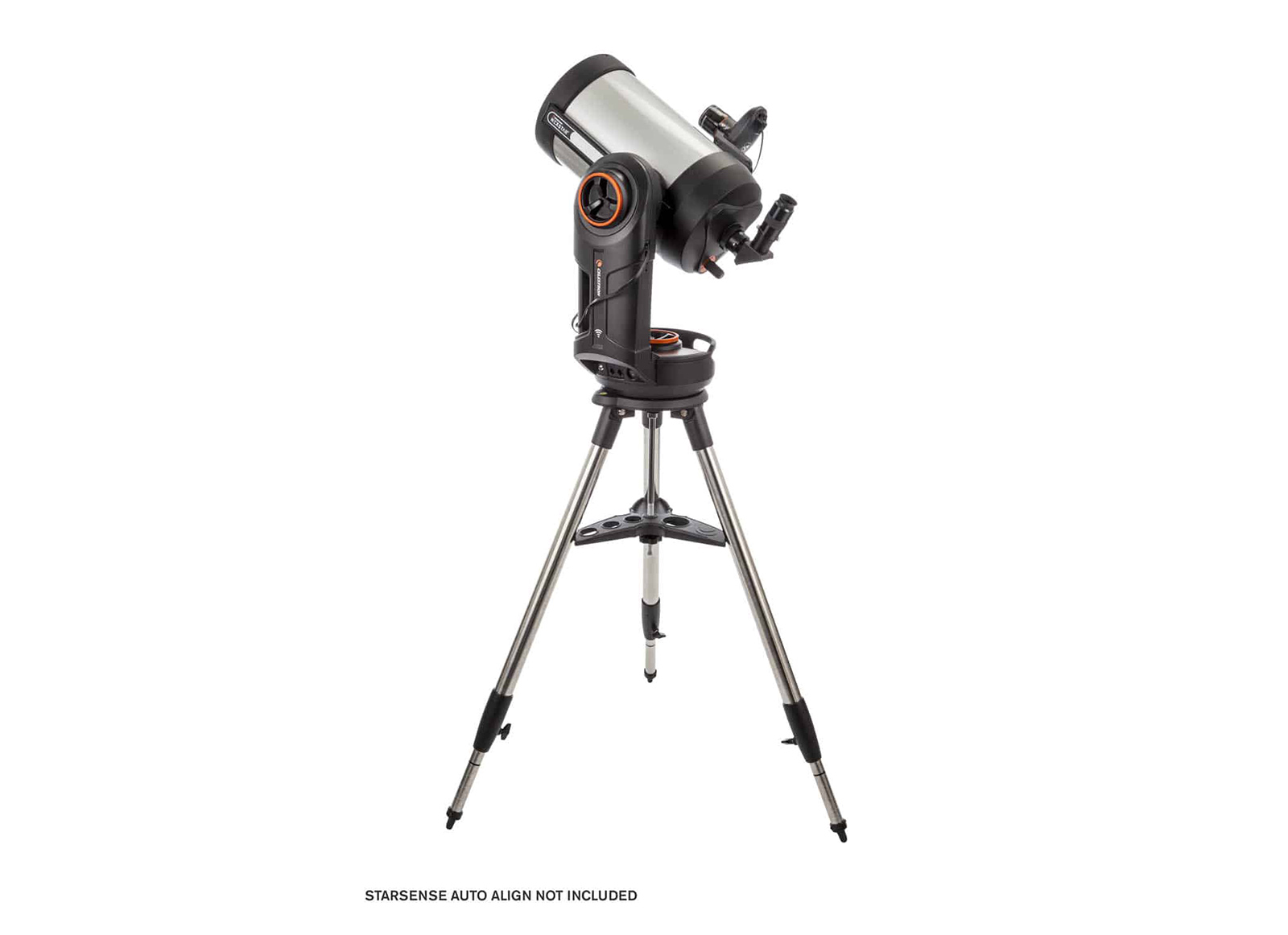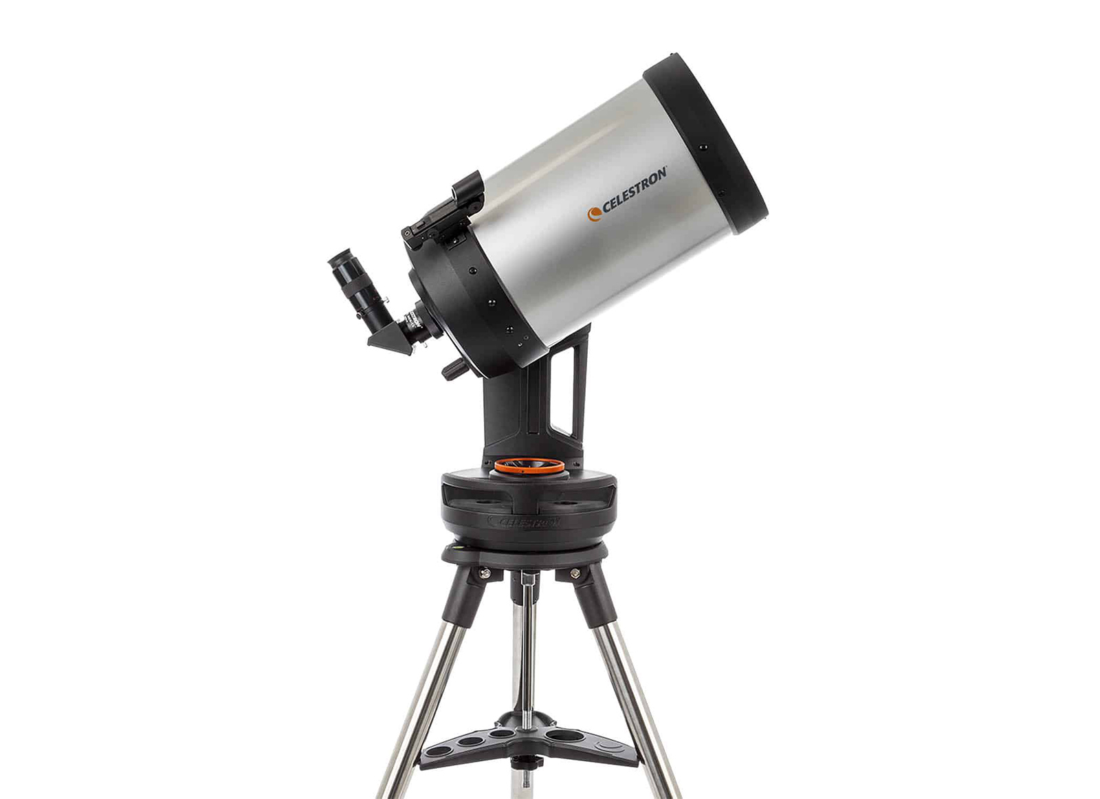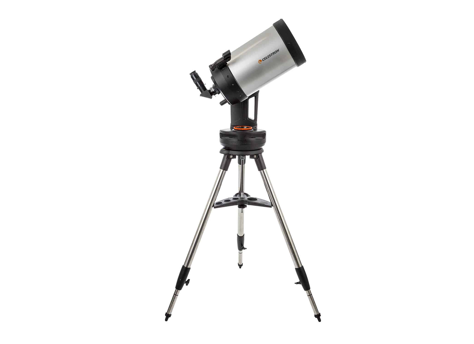 Stufi di avere le tasche piene di oculari, filtri e raccordi? Il treppiede del NexStar Evolution è dotato di un vassoio con fori per alloggiare oculari e accessori da 31.8 e 50.8 mm, di una parte piena su cui appoggiare filtri e raccordi e – udite udite – di un illuminatore superiore a LED rosso che vi aiuterà a scegliere gli accessori senza rovinare l’adattamento al buio. Questo utilissimo vassoietto inoltre fa richiudere il treppiede senza bisogno di smontarlo, operazione che fa risparmiare tempo e fatica.