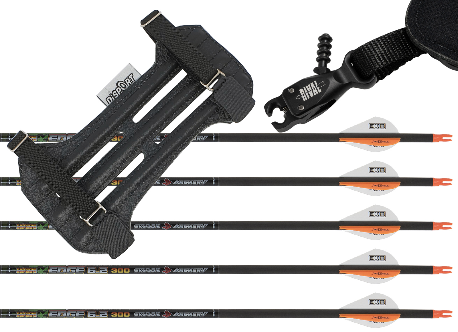 Set di accessori indispensabili per iniziare a tirare con l'arco Compound Ready to Shoot (pronto per il tiro). Il Kit comprende: