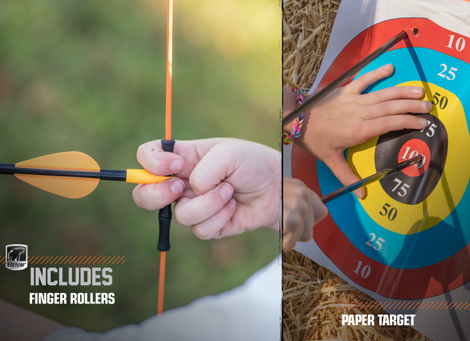 Questo set arco regolabile è stato creato da Bear per dare ai bambini con un età compresa tra i 4 e i 7 anni, un set arco completo per divertirsi.
