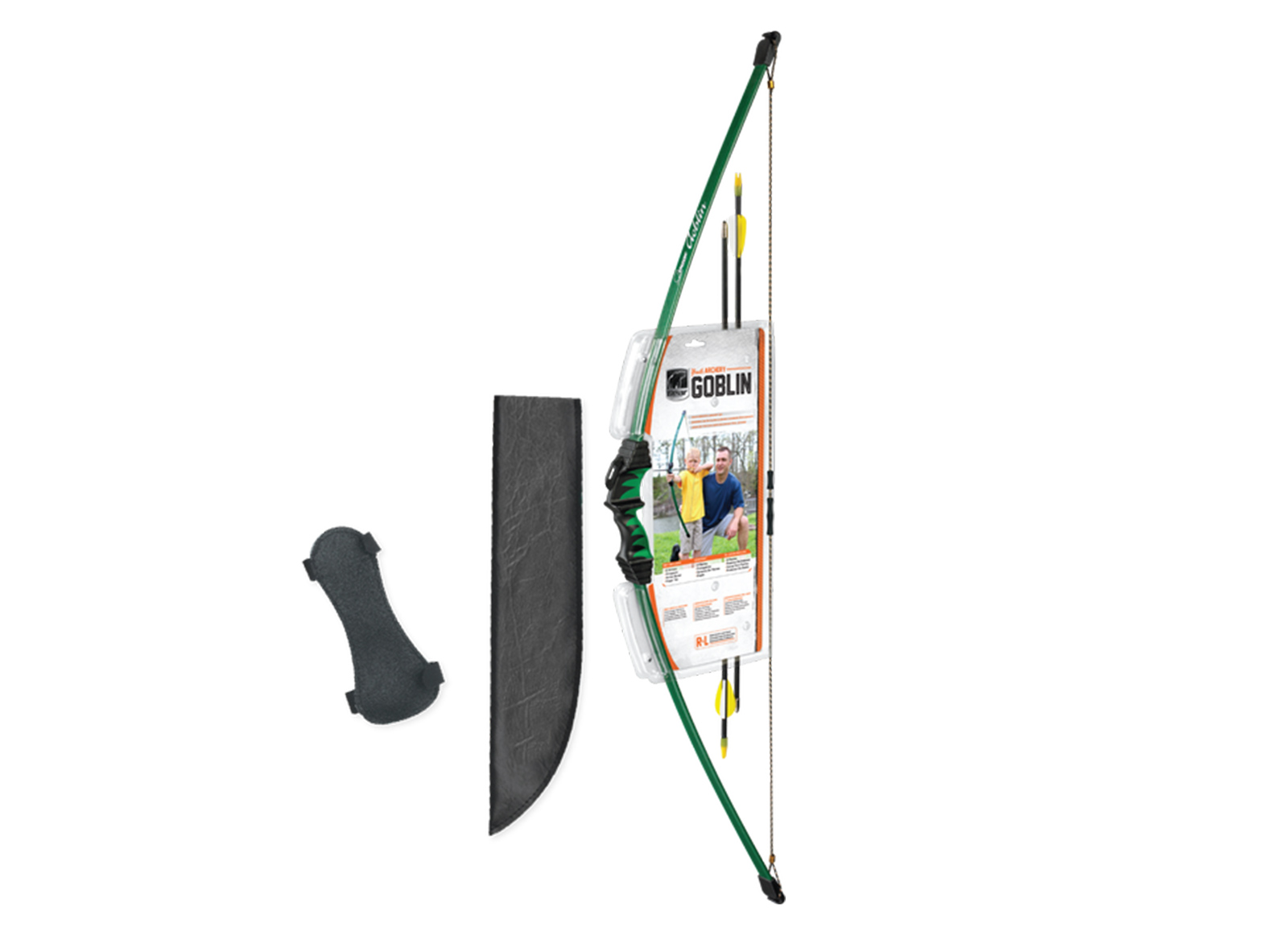 E' un arco con lunghezza totale da 44'' adatto a bambini di età tra i 4 e i 7 anni. E' completo di tutti gli accessori per iniziare a tirare con l'arco (2 frecce, un mirino, un prabraccio, una faretra e un paradita).