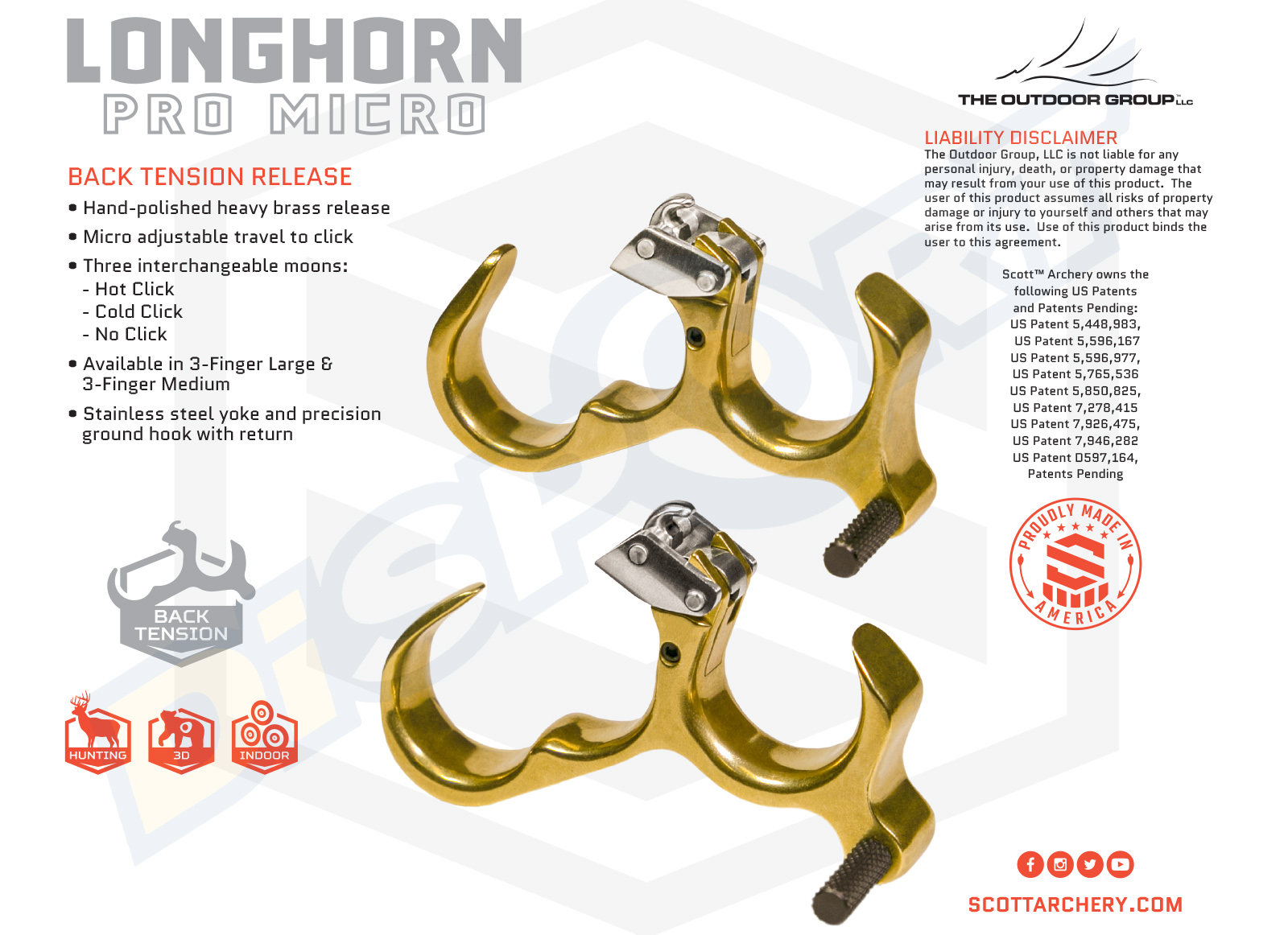 Realizzato in ottone pesante con una base più larga ed ergonomica del classico Longhorn, ha 3 mezze lune intercambiabili: Clicker Veloce, Clicker Lento e NO Clicker in un’unico sgancio. Disponibile 3 Dita, Medium o Large