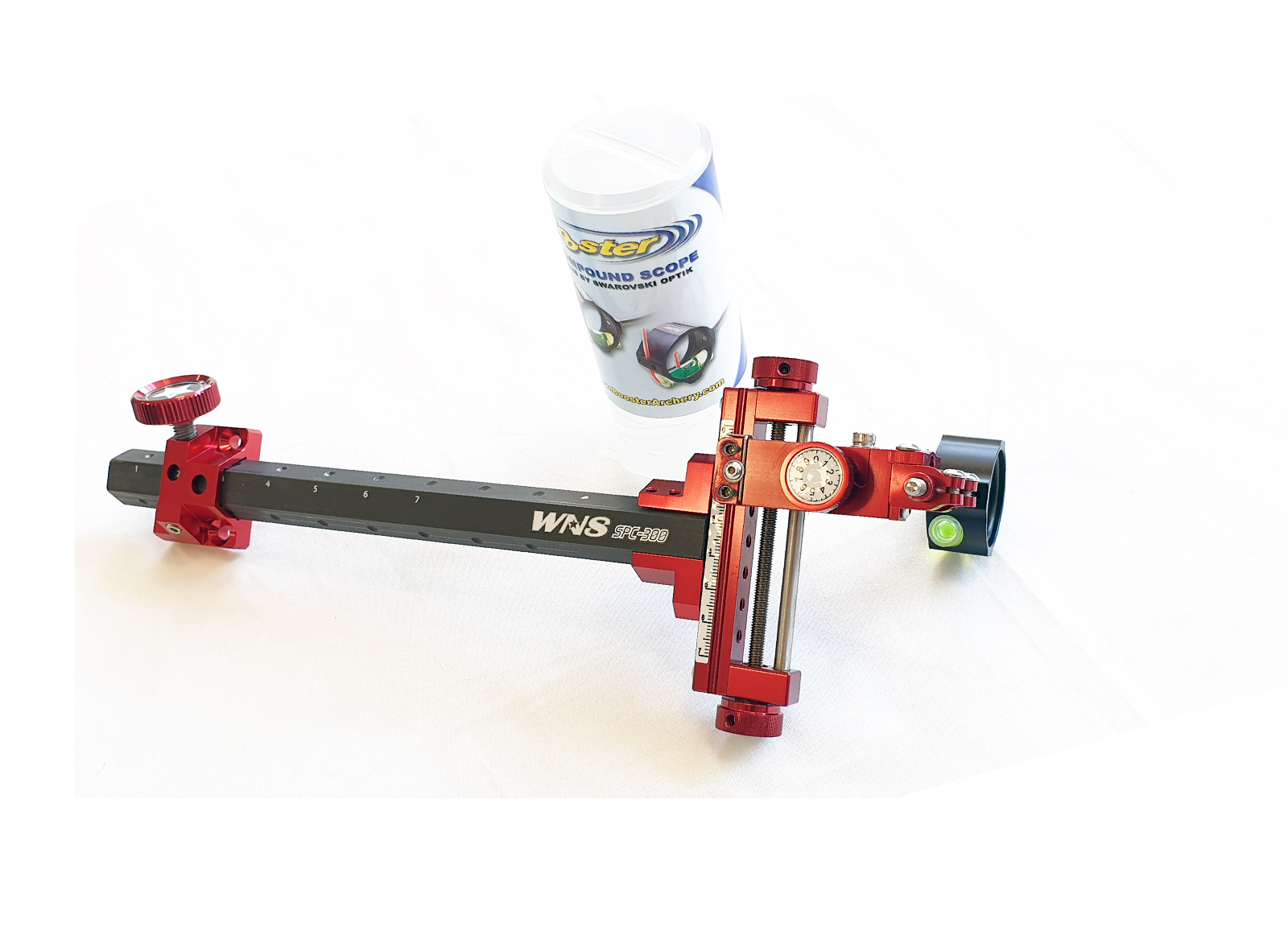 Mirino in ottime condizioni, con scope per compound +75 Booster. Completo di custodia originale WNS.
