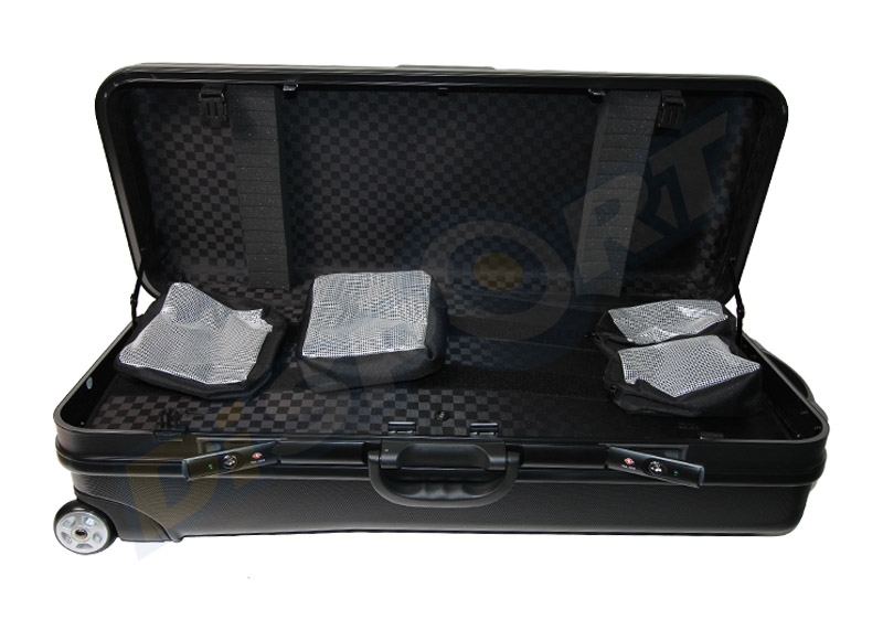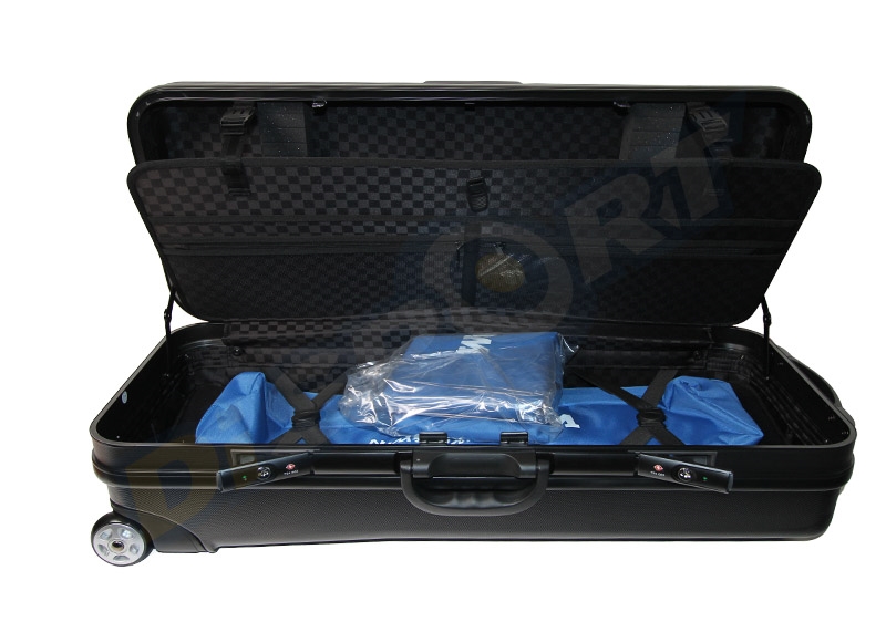 Ampia valigia per archi ricurvi, dotata di ruote, chiusura con numero di serie, estremamente robusta. Misure interne: 83x33x20,5cm.