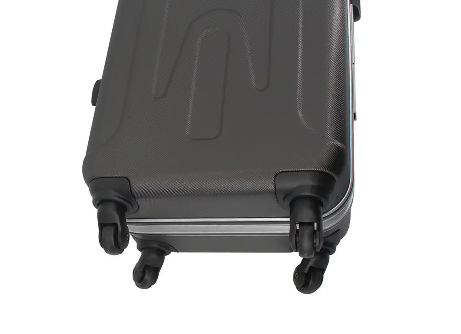 Valigia in ABS firmata DECUT. Dotata di 4 ruote, molto spaziosa e con un'ottima organizzazione delle varie tasche.